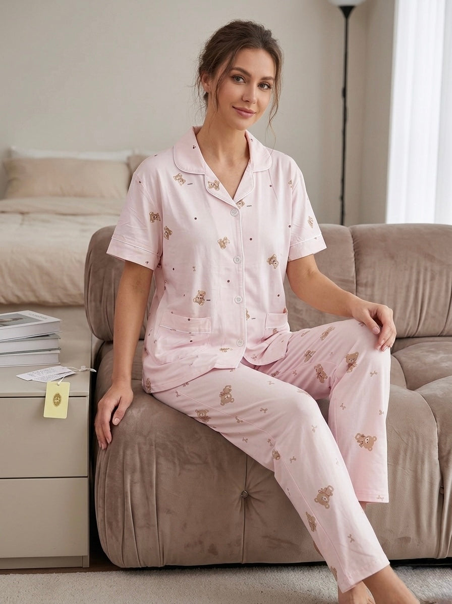 بيجامة لطيفة بنقشة دببة تضيف لمسة مرحة لإطلالتك داخل المنزل 🧸💖