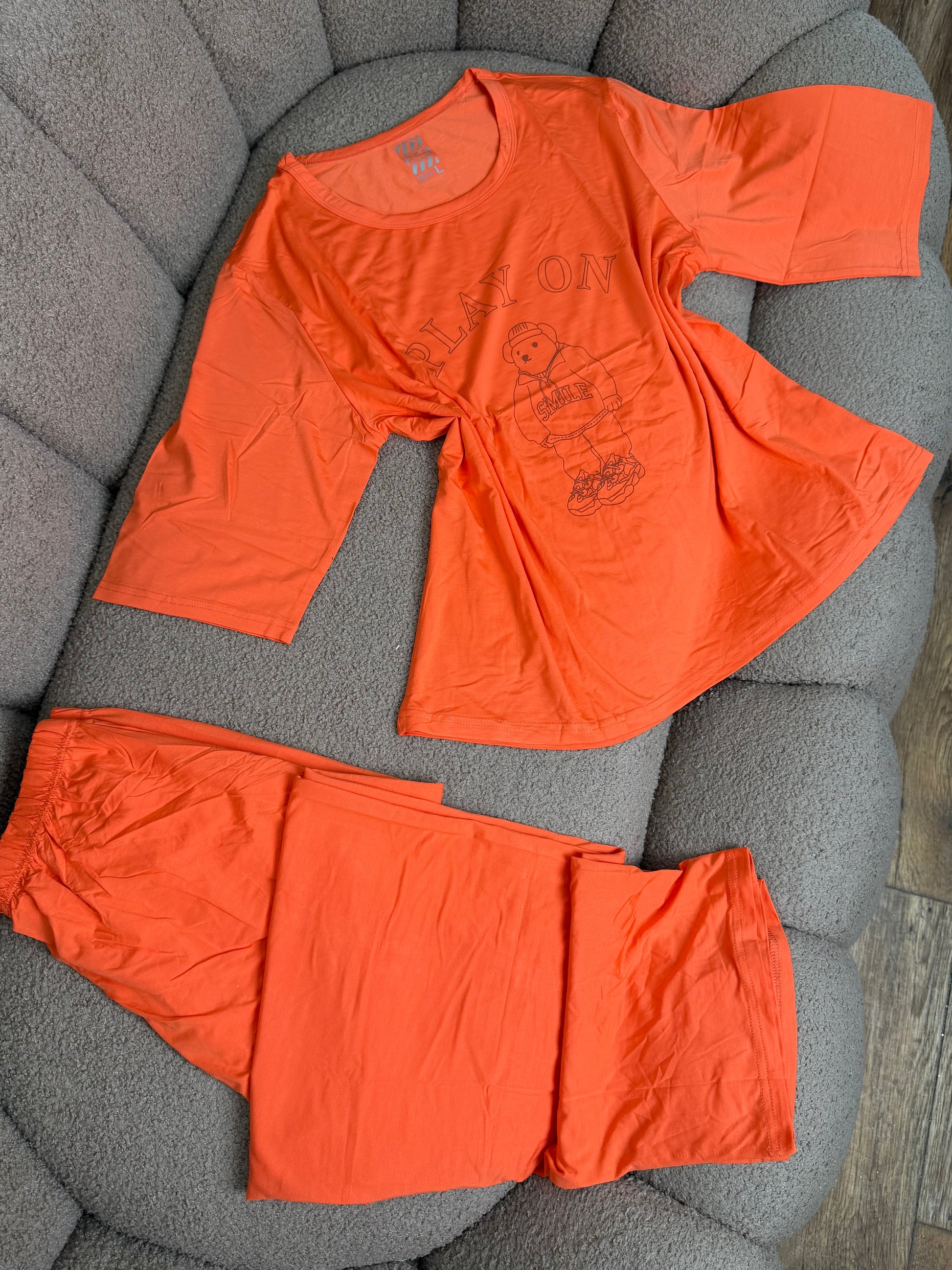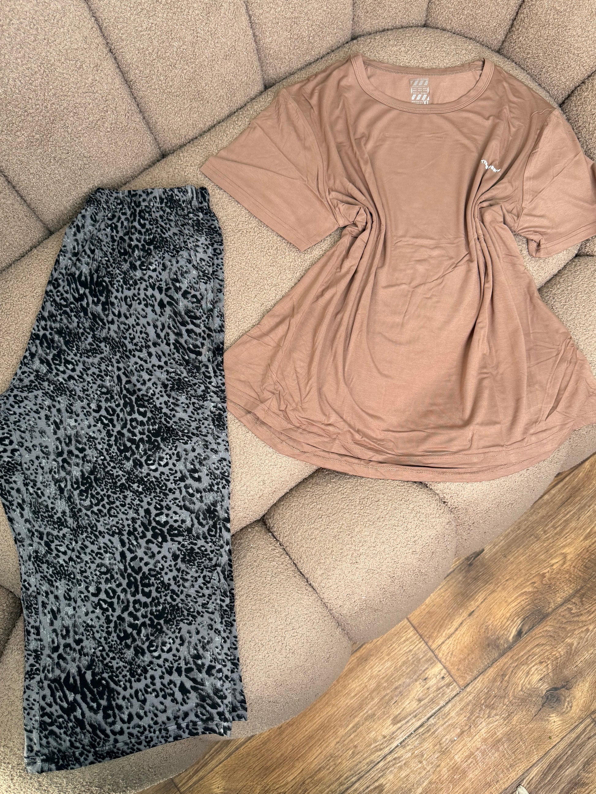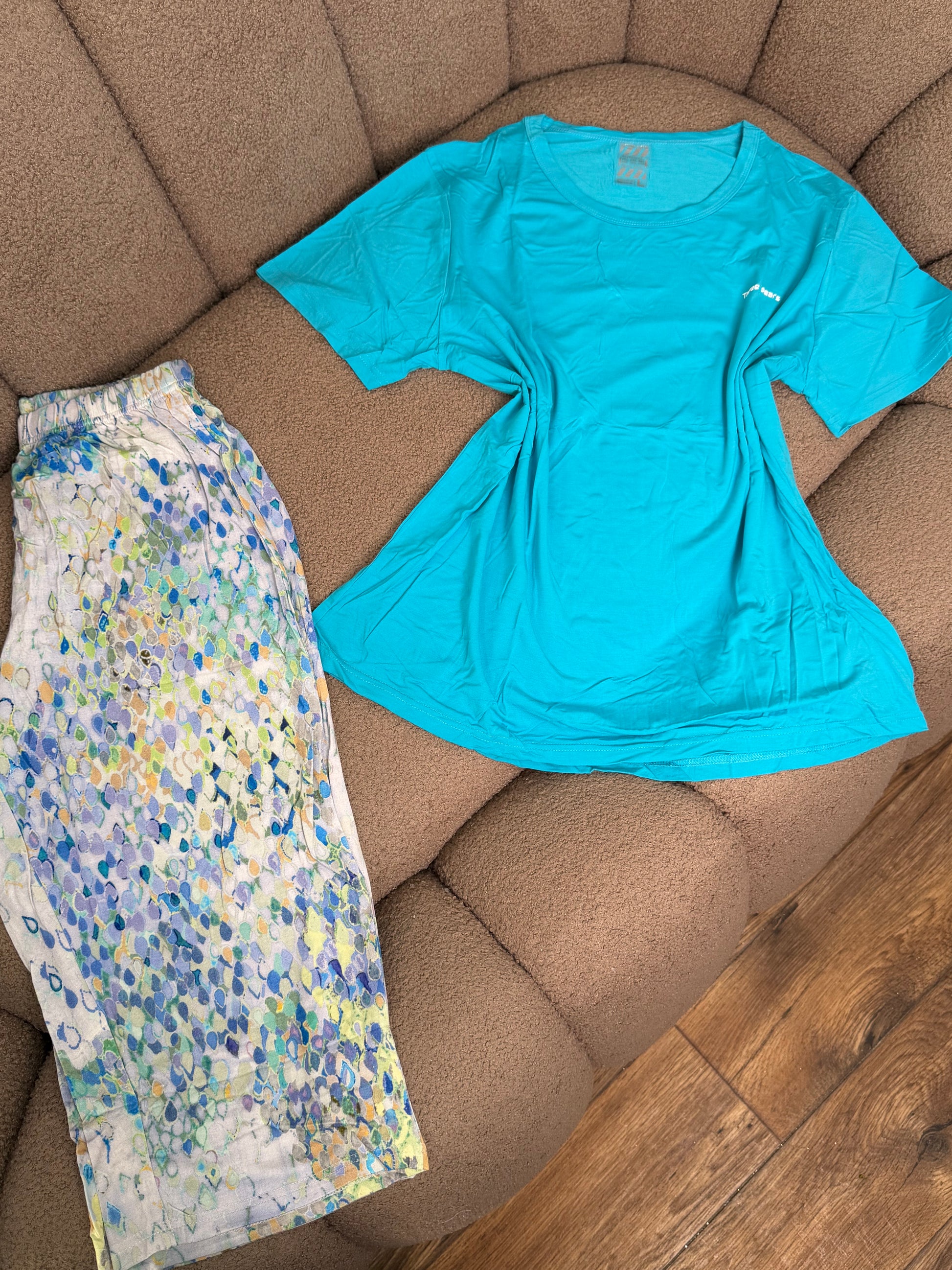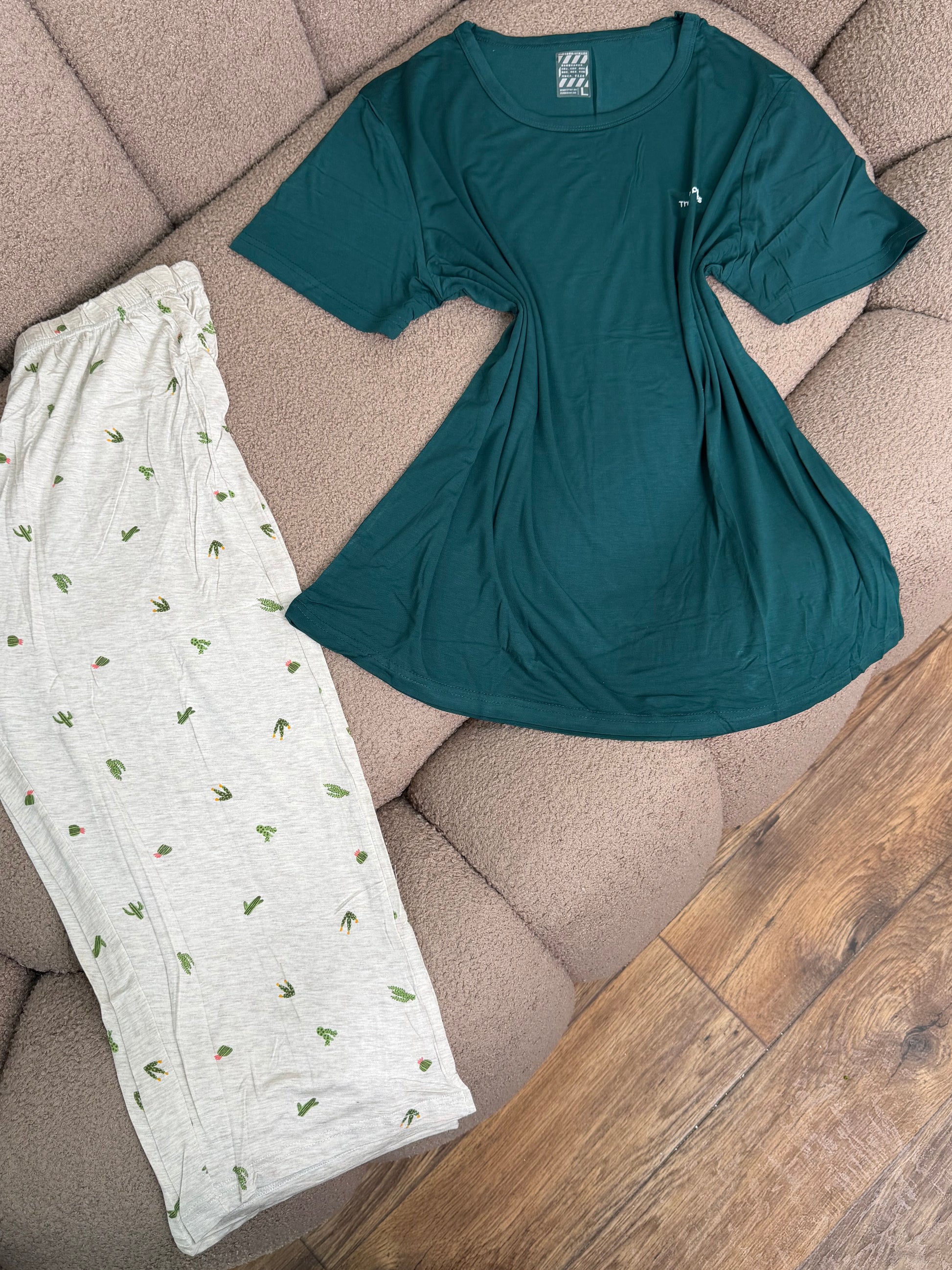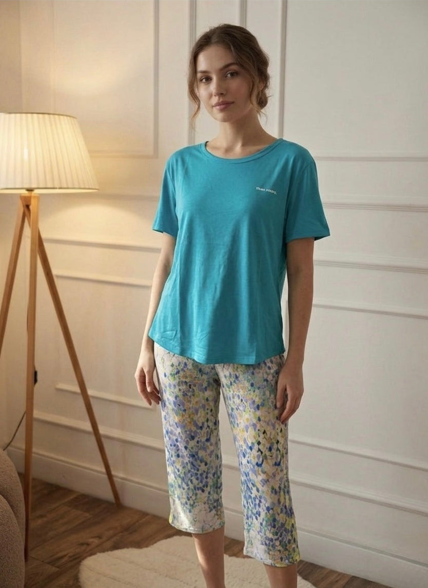 تمتعي براحة تامة مع بيجامتنا المصنوعة من القطن الناعم، والتي تتميز بتصميمها الاستوائي الجذاب. مثالية لقضاء أمسيات هادئة في المنزل.