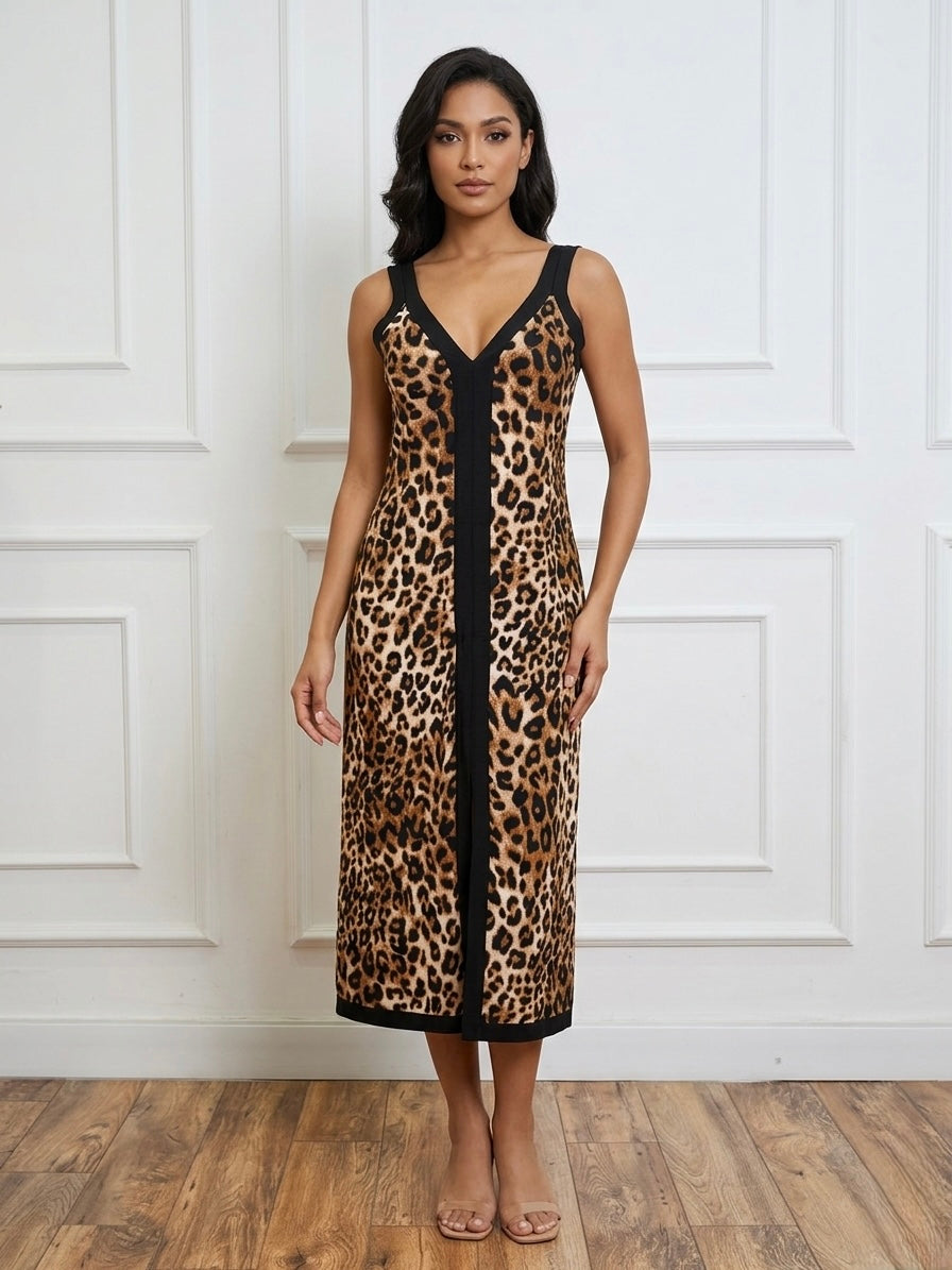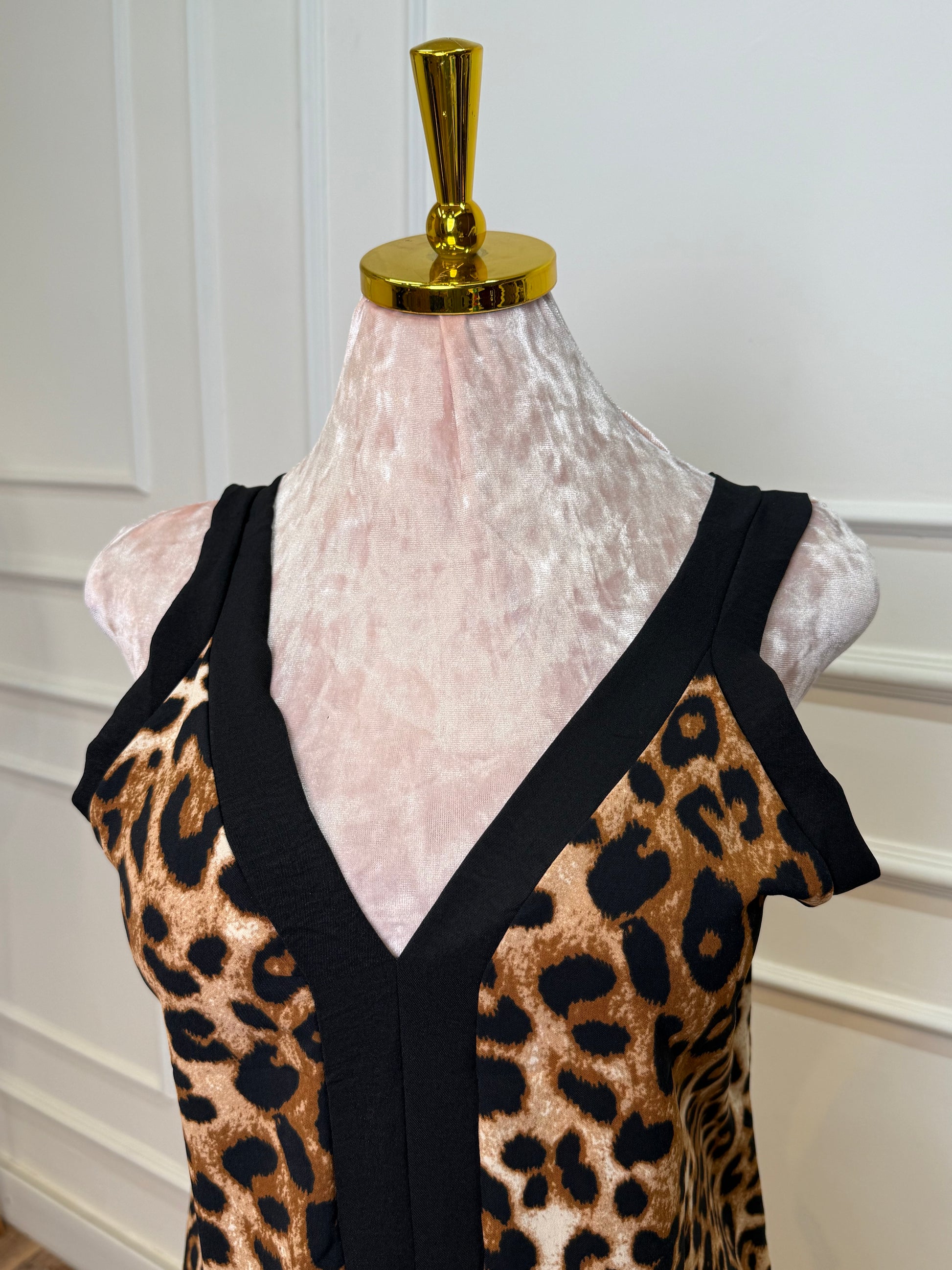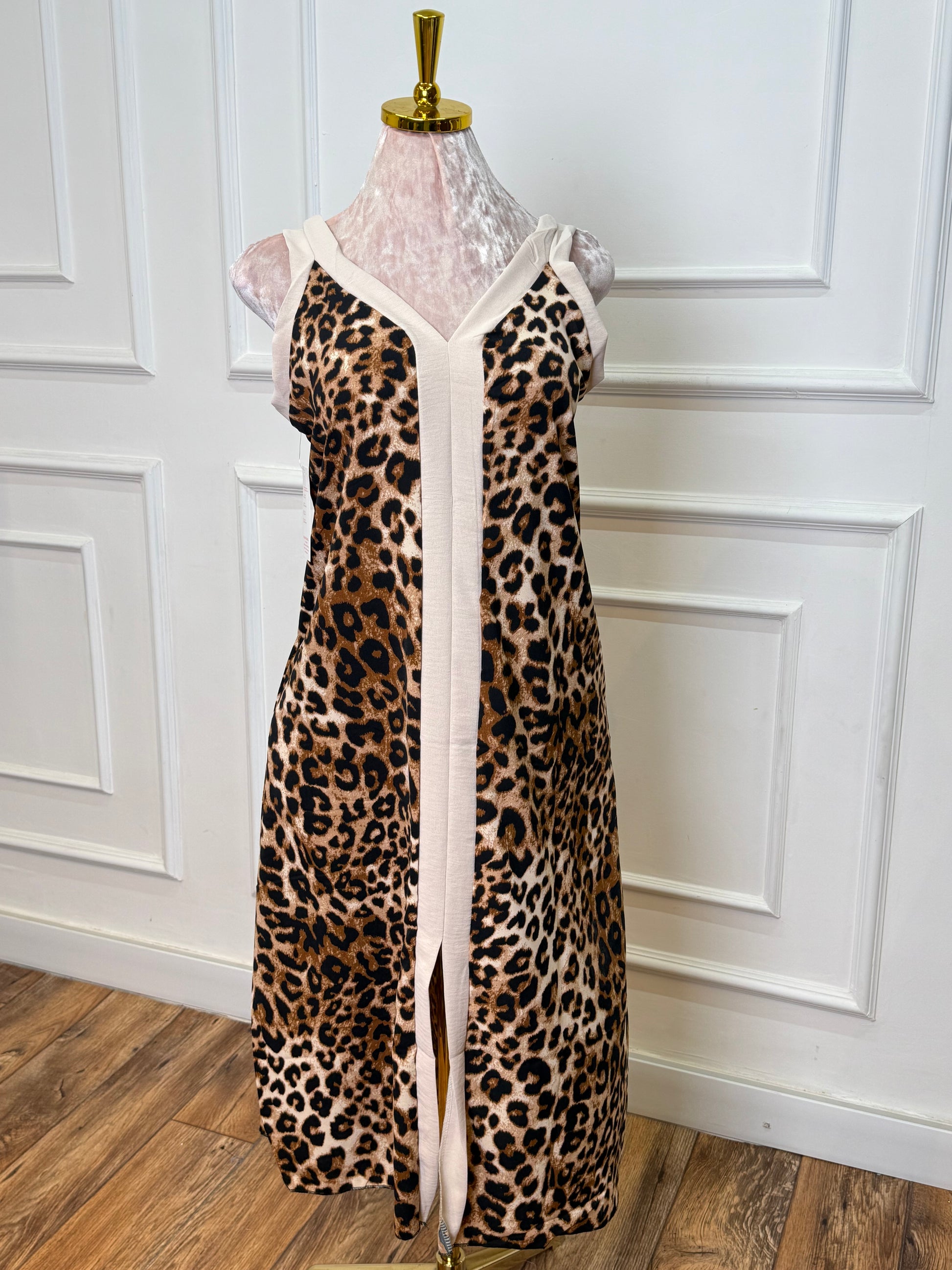 أضيفي لمسة من الجرأة والفخامة إلى خزانة ملابسك مع هذا الفستان المطبوع بنقشة النمر الكلاسيكية. تصميم يجمع بين القوة والأنوثة، ليمنحكِ إطلالة لافتة ومميزة في مختلف المناسبات.